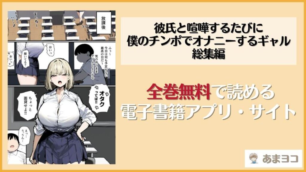 \ お得キャンペーンで300円OFF! / 今すぐ無料で試し読み 今回は、サークル「たまごやき」の同人誌エロ漫画『彼氏と喧嘩するたびに僕のチンポでオナニーするギャル 総集編』が無料で読めるアプリやサイトを徹底調査しました。 結論、彼氏と喧嘩するたび... 同人誌