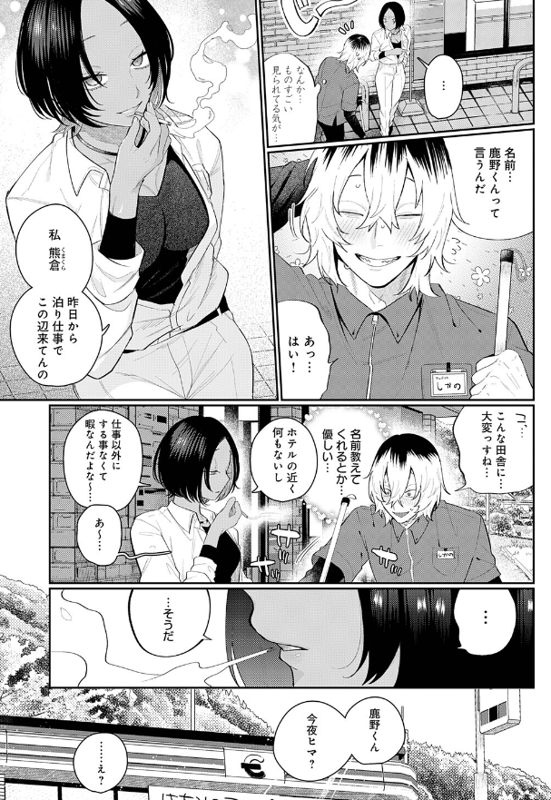 助けてくれたのは、仕事の都合で偶然この田舎に滞在していたガテン系お姉さん・熊倉さん。