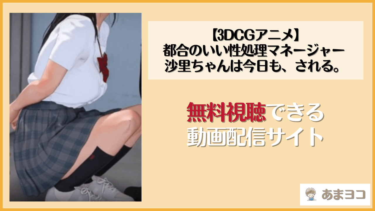 今回は、みゅるめーく先生の人気同人動画『【3DCGアニメ】都合のいい性処理マネージャー 沙里ちゃんは今日も、される。』が無料視聴できる動画配信サイトを徹底調査しました。