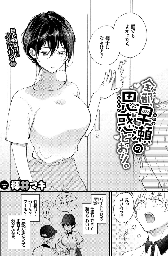 今回は、作家「櫻井マキ」の同人誌エロ漫画『全部、早瀬の思惑どおり。』が無料で読めるアプリやサイトを徹底調査しました。